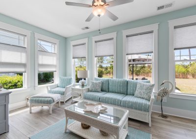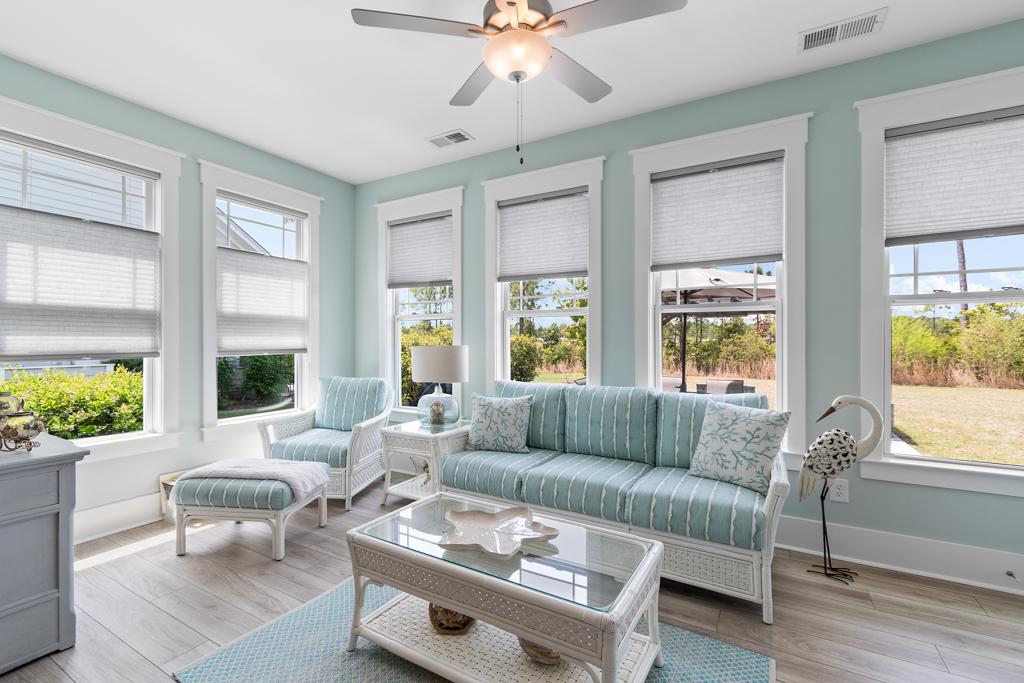 Natural light just pours into this home from the front door complete with transom and sidelights, and the multiple windows along the rear of the home. The generously-sized primary bedroom is your retreat at the end of the day, with its massive closet and ensuite complete with tiled, walk-in shower with frameless glass doors, dual vanities and soaking tub. The guest bedrooms are a comfortable size and share a full bathroom between them. The guest bathroom boasts a tiled, tub-shower with transom window, wainscoting, and additional large linen closet for extra storage. The laundry room is well adorned with cubbies and cabinets for storage and a drop zone. Imagine yourself enjoying your morning coffee or an evening beverage from your grand screened porch, enjoying your beautiful patio and peaceful yard. Speaking of yard, this backyard is a rare find as it is absolutely large enough to accommodate a pool! Amenities at the Retreat include an open-air lanai with bar area, shuffleboard court, and resort-style pool. This location is extremely convenient, and one of the few areas where you can take a golf cart to the beach and shopping. This is a very happy and active community, with newcomers welcomed!